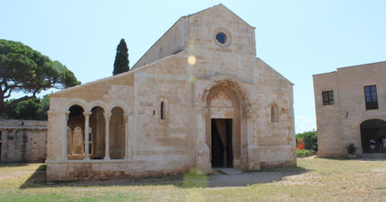 Fatta realizzare da Raimondello Orsini del Balzo ed iniziata nel 1383(1), poteva dirsi già compiuta nel 1391(2). Quest’ultima data è incisa sull’architrave della porta laterale della chiesa, posta alla sinistra dell’osservatore.